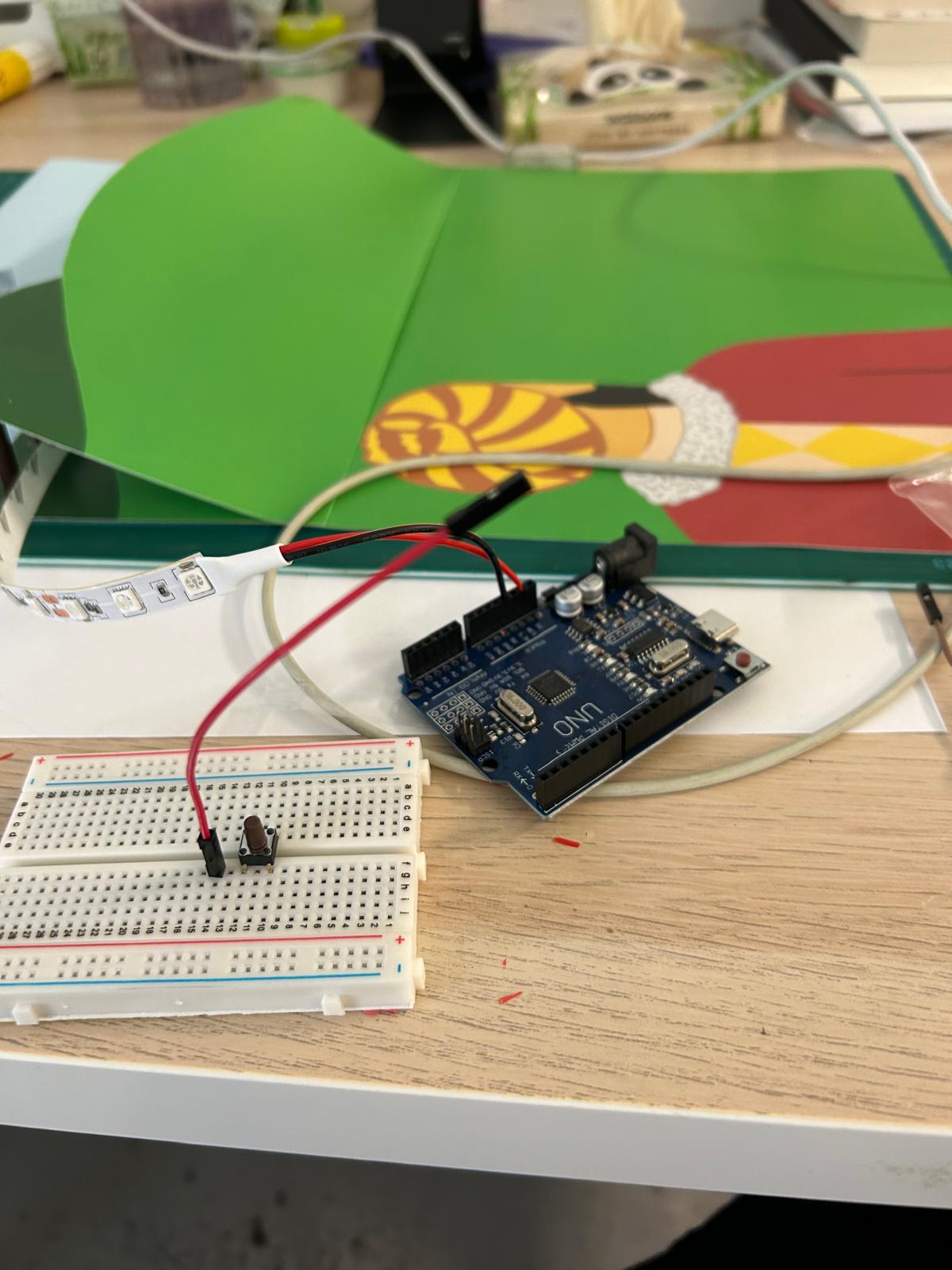 I first started experimenting with buttons but it was getting a bit complex, as when I turned the LED on the button didn’t really work. And, I was not able to create light movement on the LED strip. So first I decided just to work with the LED strip and insert the button later.