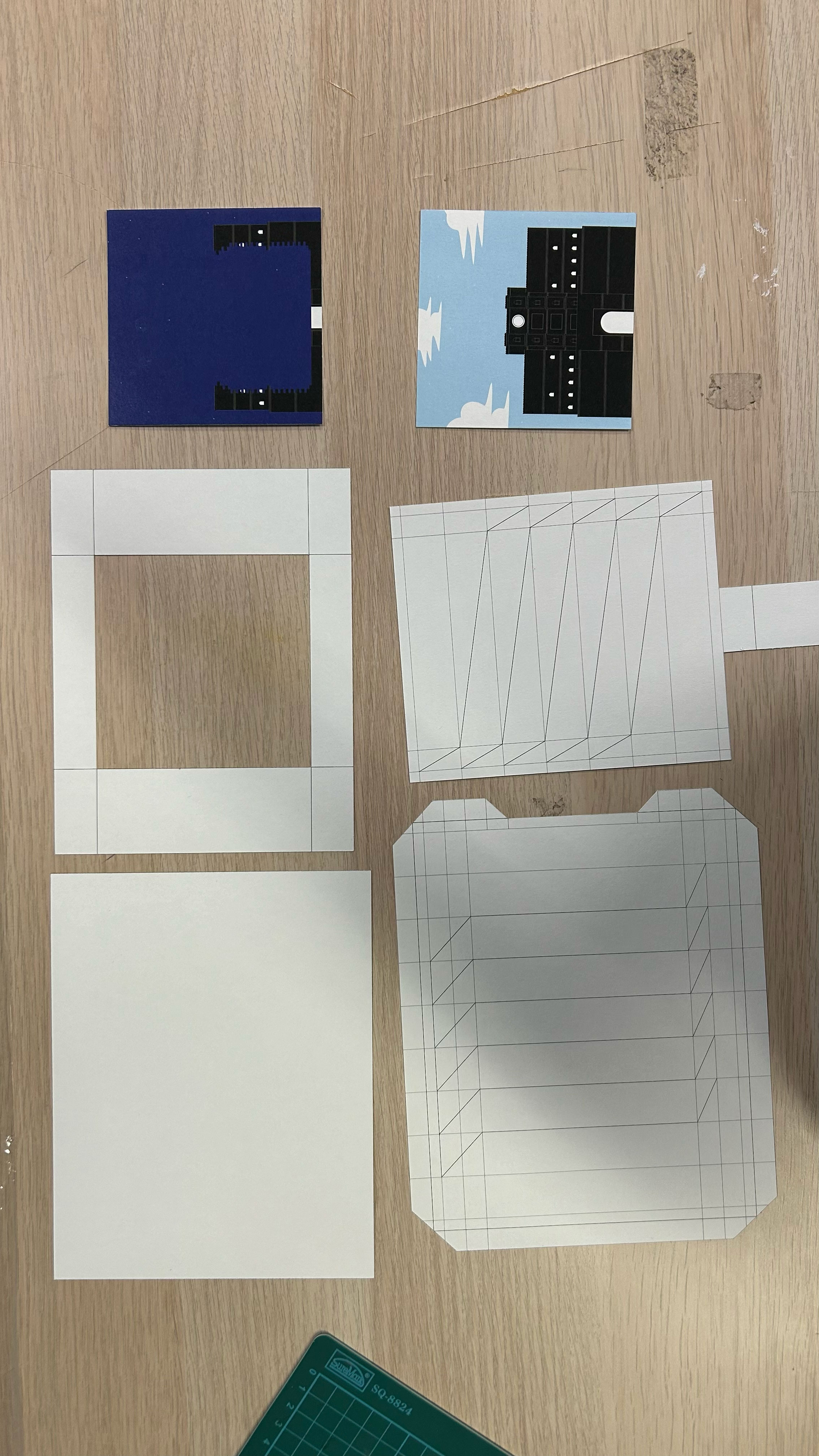 The first page was just gonna be paper interactivity. While thinking about how I could craft it, came across this youtube tutorial, which I thought could be an interesting and a simple way to show moving visuals. Instead of draiwng guides on a paper I just made them on illustrator and got it printed. I printed front and back according to how I wanted the visuals to be there. But printing front and back was not working out so well as it interfered with the alignment. But I still finished crafting it so that I could also text the placement of the image, the fuctionality... the size of the visual was too small. THe visible frame turned out to be just 7cm by 7cm. I looked for another youtube tutorial so that I can explore with a bigger size.