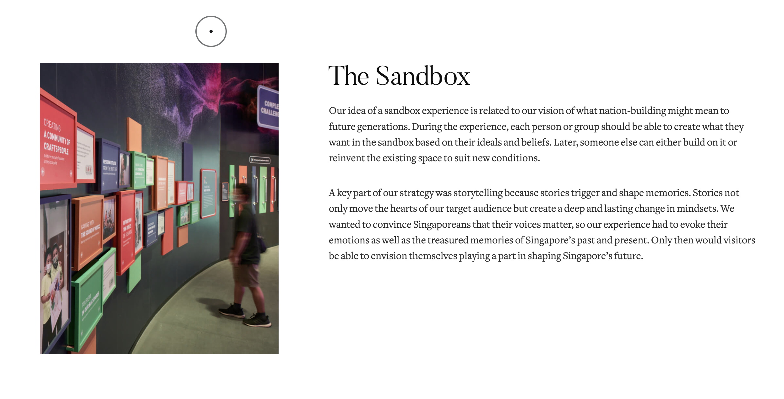 I started to realise that I was going quite slow, it is week-4 and I don't have a starting point. So I started looking for some real-world application that could inspire me. One of the projects that I found online was The Sandbox Experience at Singapore Discovery Centre. This was a great example for me for immersive and purposeful storytelling for hearing from the citizens to know their understanding of what Singapore’s future looks like.