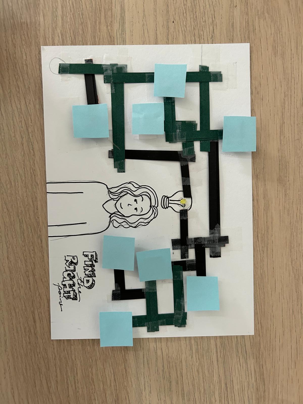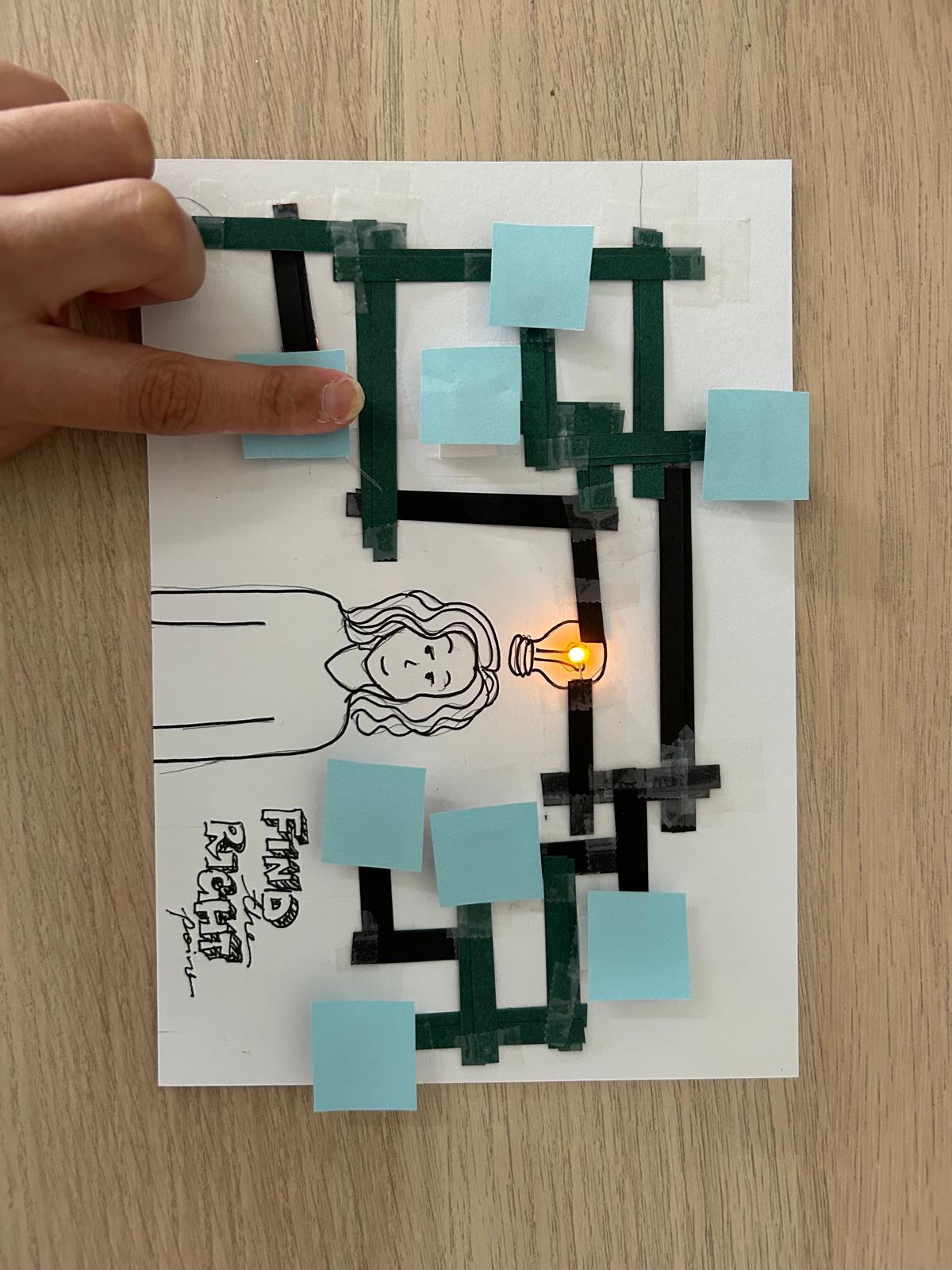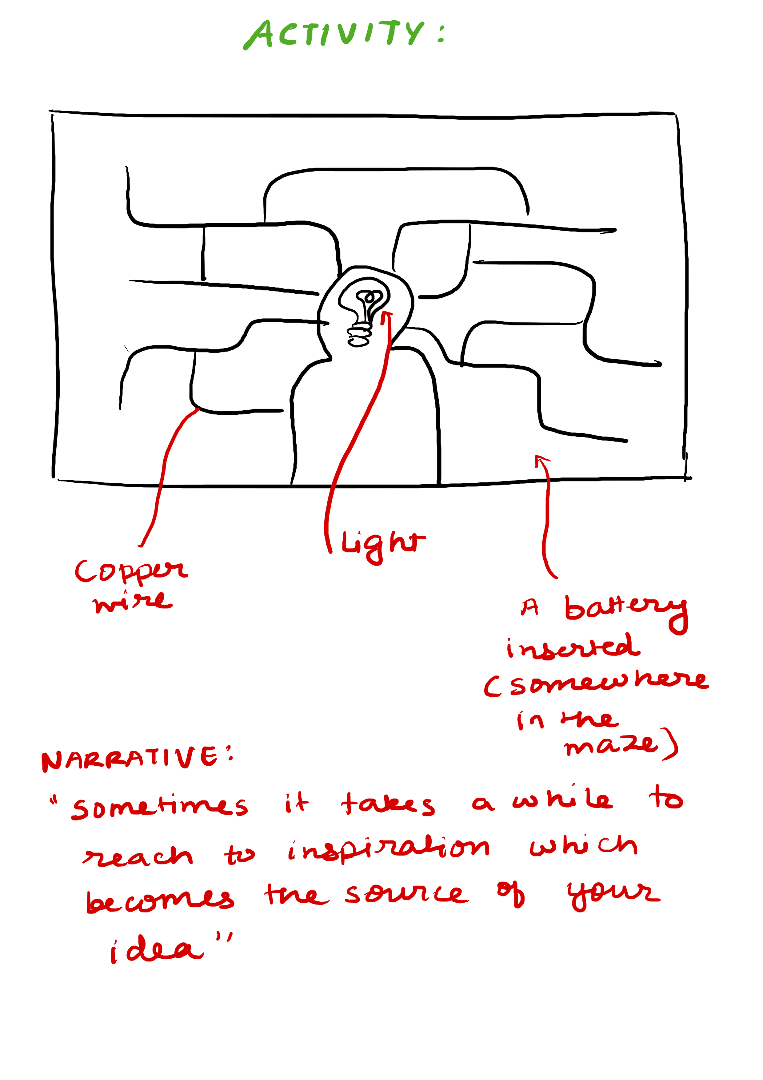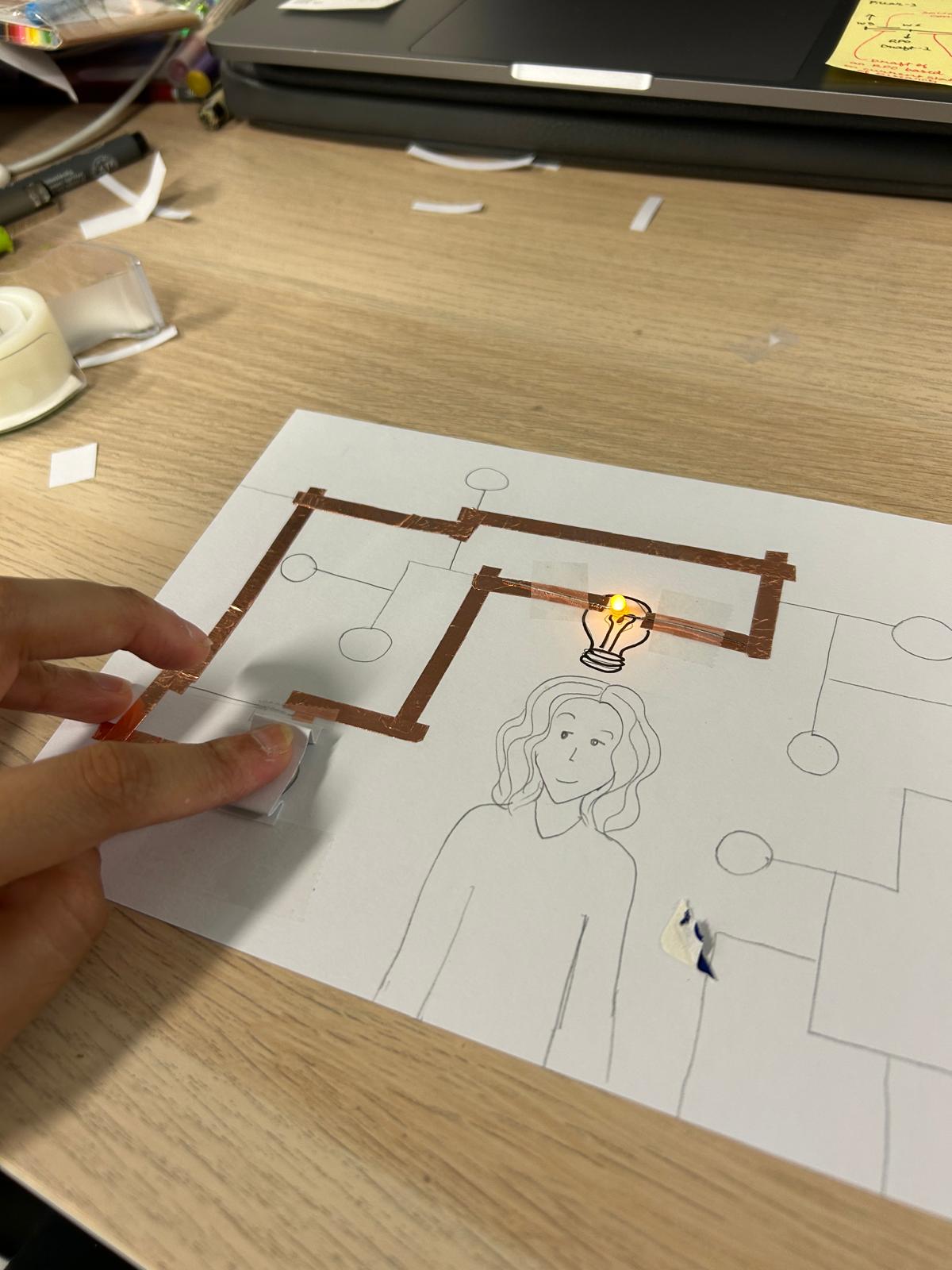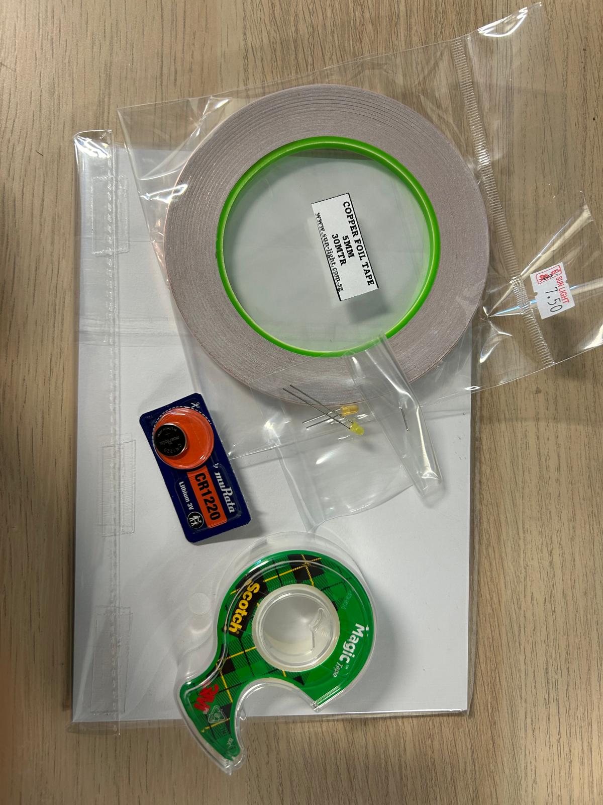 I drew out a sketch of the activity and a user-journey. Materials I got for this: (A copper tape, LED, battery, Scotch Tape)